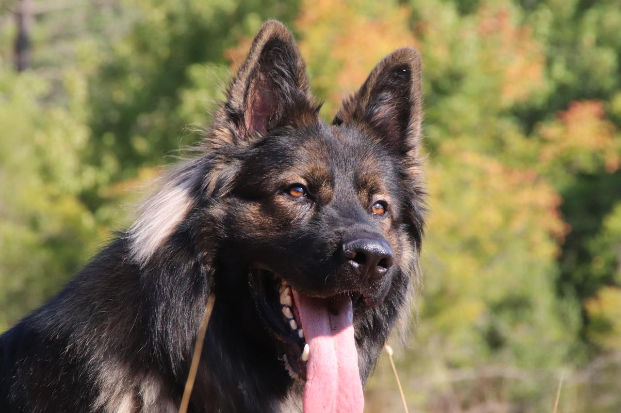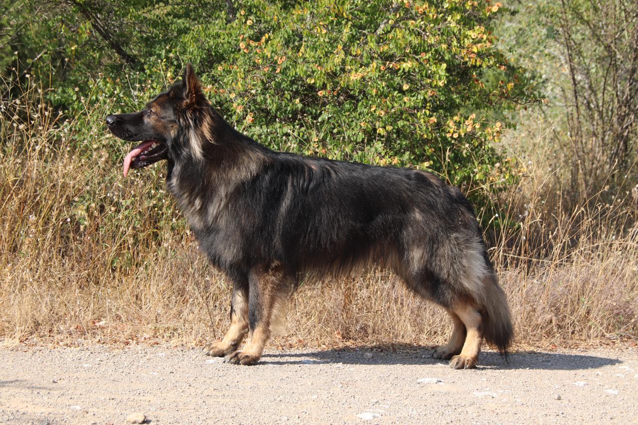 Son poil est assez long et bien charbonné sur un sous poil très très fourni d'un joli rouquin.