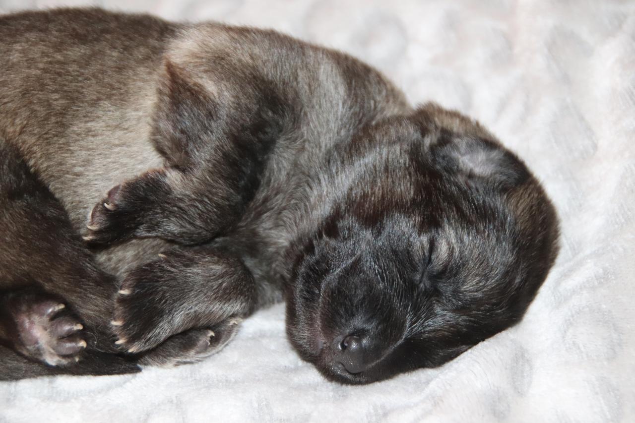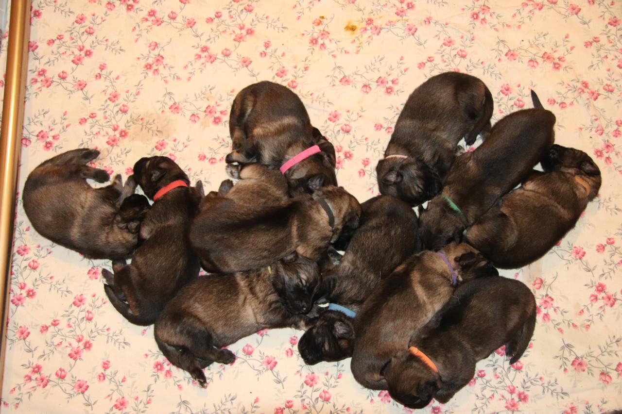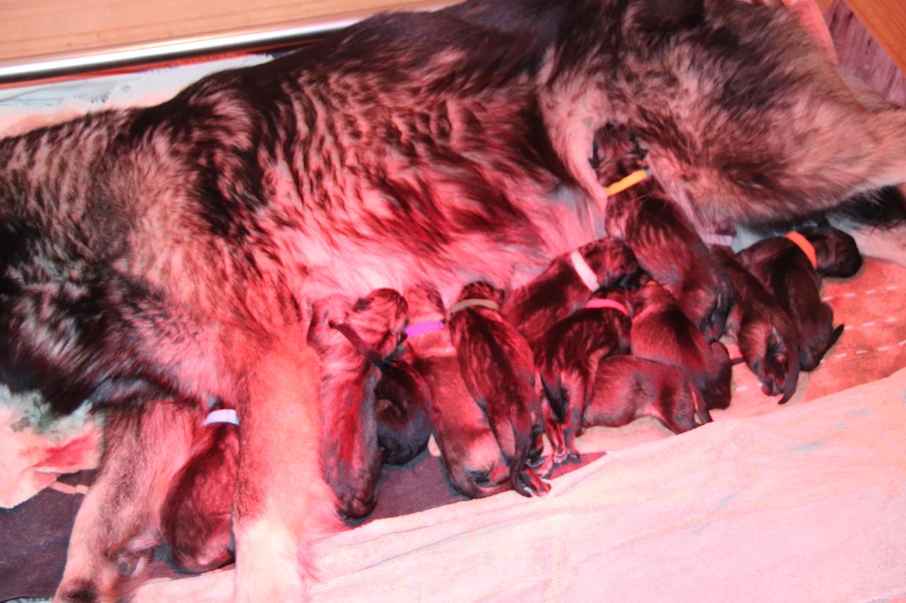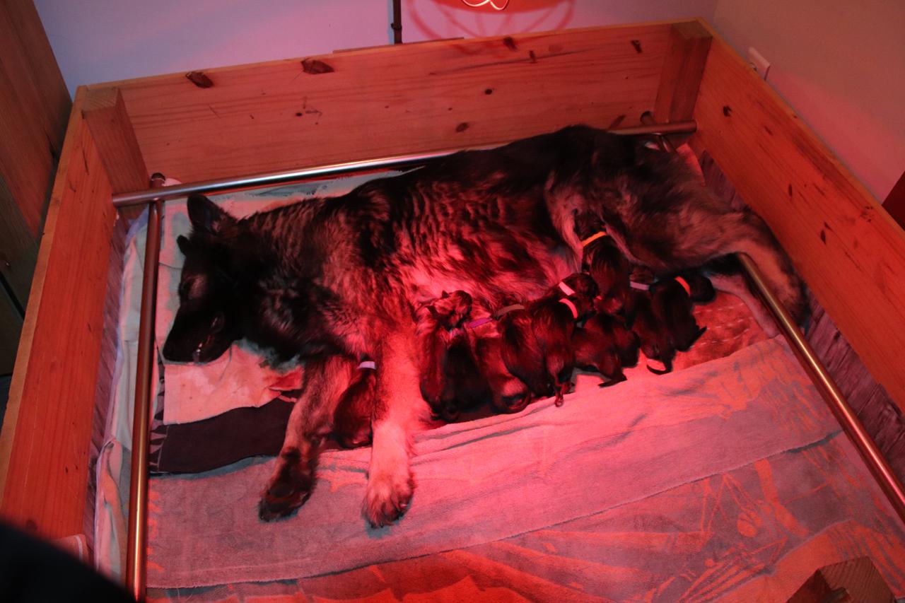 Oui, oui, vous pouvez compter, 12 bébés! Pour sa dernière portée, Ollie nous a offert à nouveau 12 perles argentées. La mise bas s'est très bien passée et toujours une connexion au top avec ma belle: la confiance mise en place depuis tant d'années se reflète à travers son regard qui dit "On fait ça ensemble comme d'habitude!" Voici donc les premières photos des 6 mâles et des 6 femelles, en plus le choix du roi!